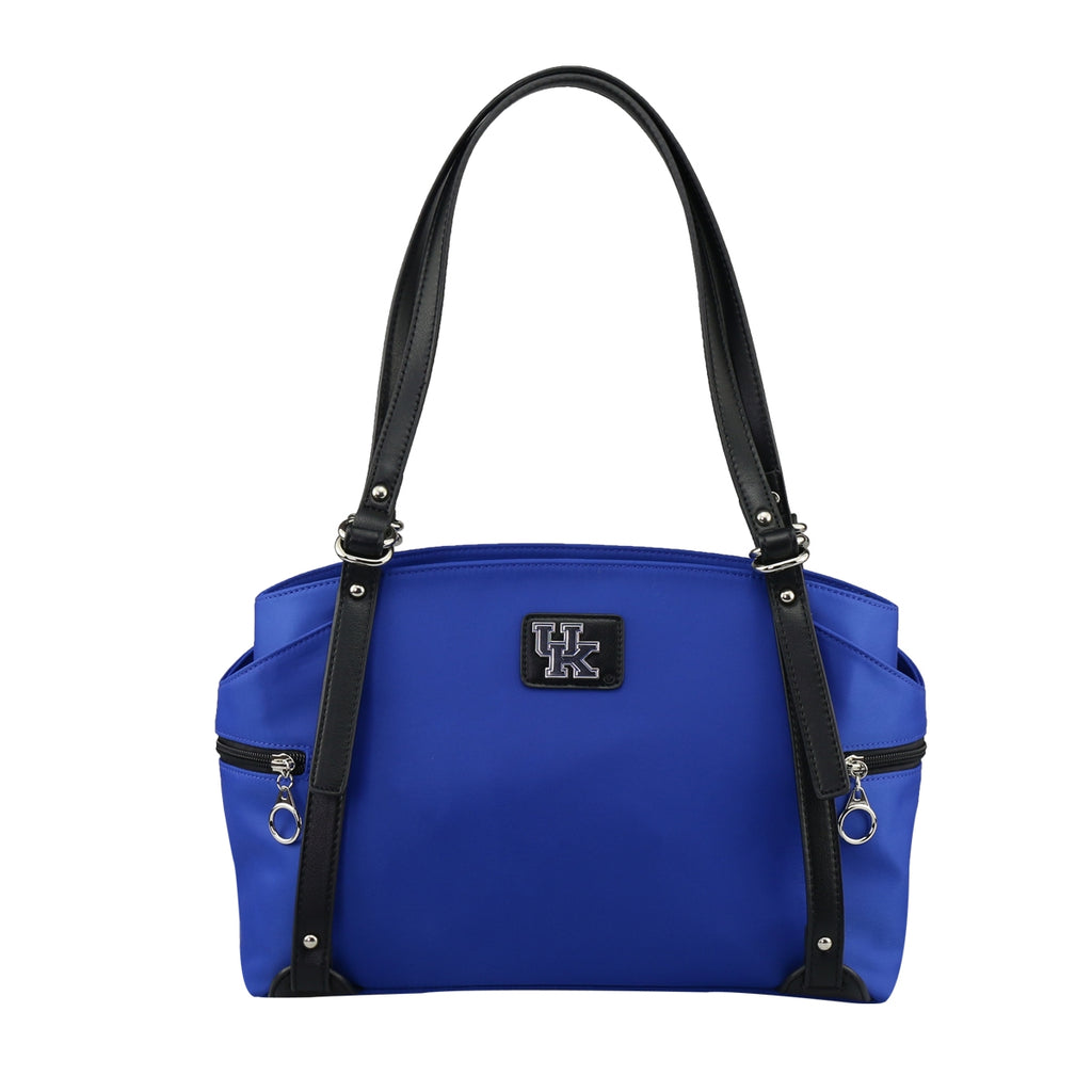 Bring a little snazzy pazazz to your outfit! This trendy and stylish Kentucky Wildcats shoulder handbag is a true fan statement piece without overstating your fan pride. This mid-sized handbag features a zip top closure and a zipper pocket on each end of the handbag. Spacious enough for your wallet, phone, tablet and other miscellaneous items. Measures 13"L X 8"H X 4"W